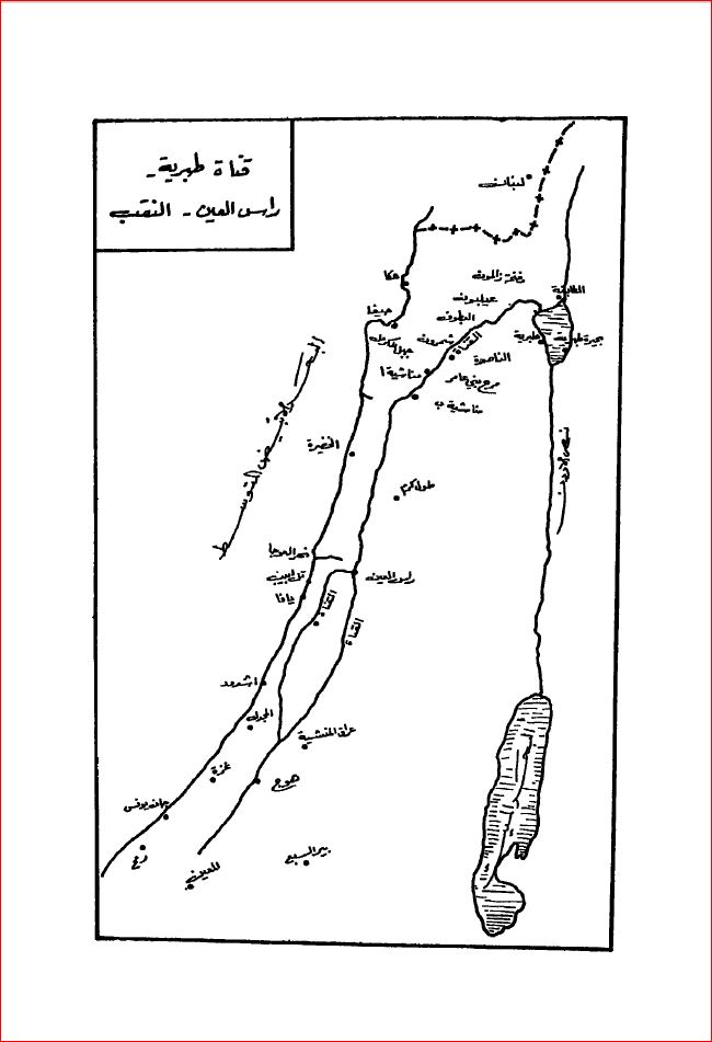 خارطة تبين قناة طبرية راس العين النقب - بلادنا فلسطين، صفحة 367 |