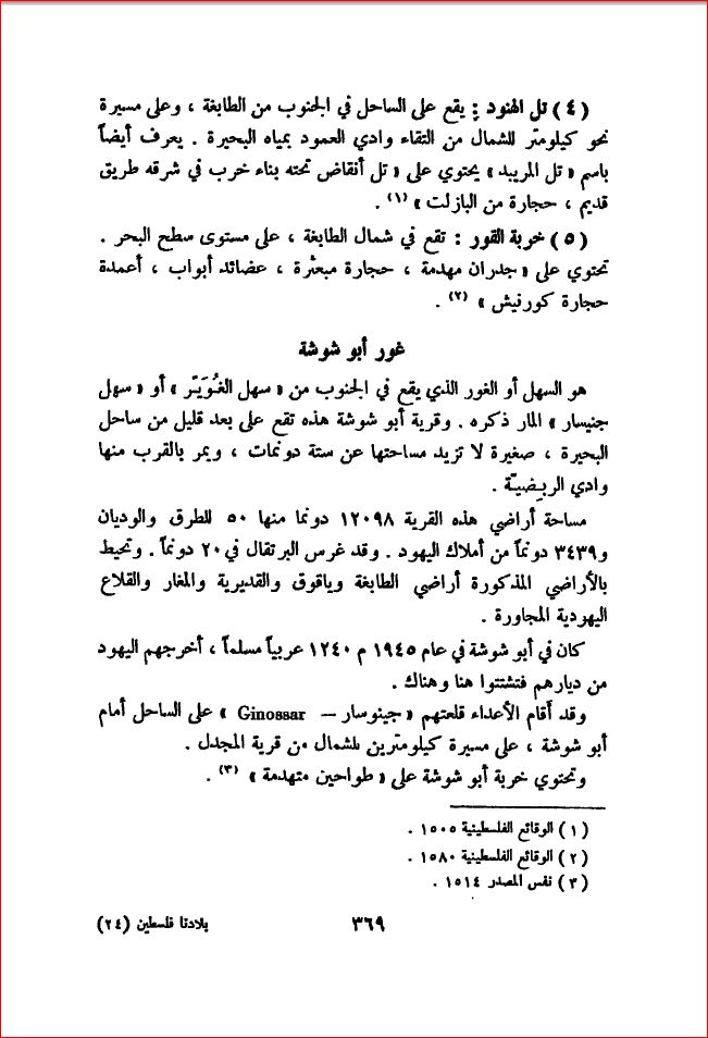غور أبو شوشة، محافظة طبرية - بلادنا فلسطين، صفحة 369 |