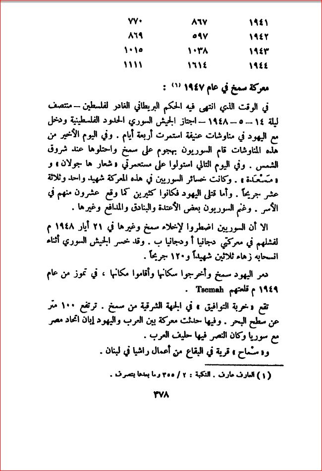 معركة سمخ 1947 - بلادنا فلسطين، صفحة 378 |