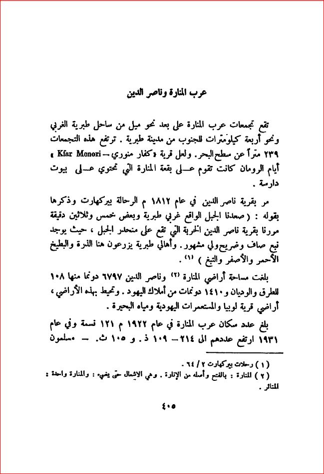عرب المنارة ونصر الدين، محافظة طبرية - بلادنا فلسطين، صفحة 405 |