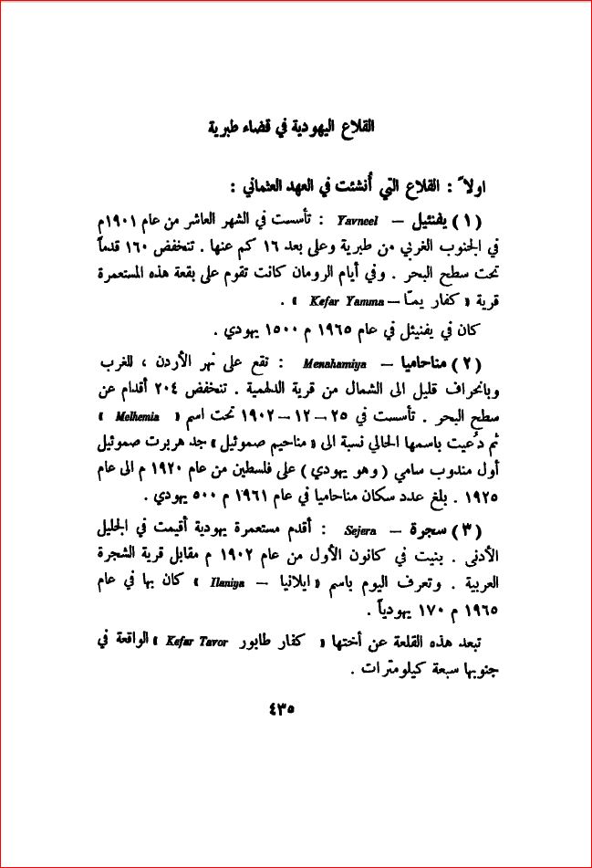 القلاع اليهودية في قضاء طبرية - بلادنا فلسطين، صفحة 435 |