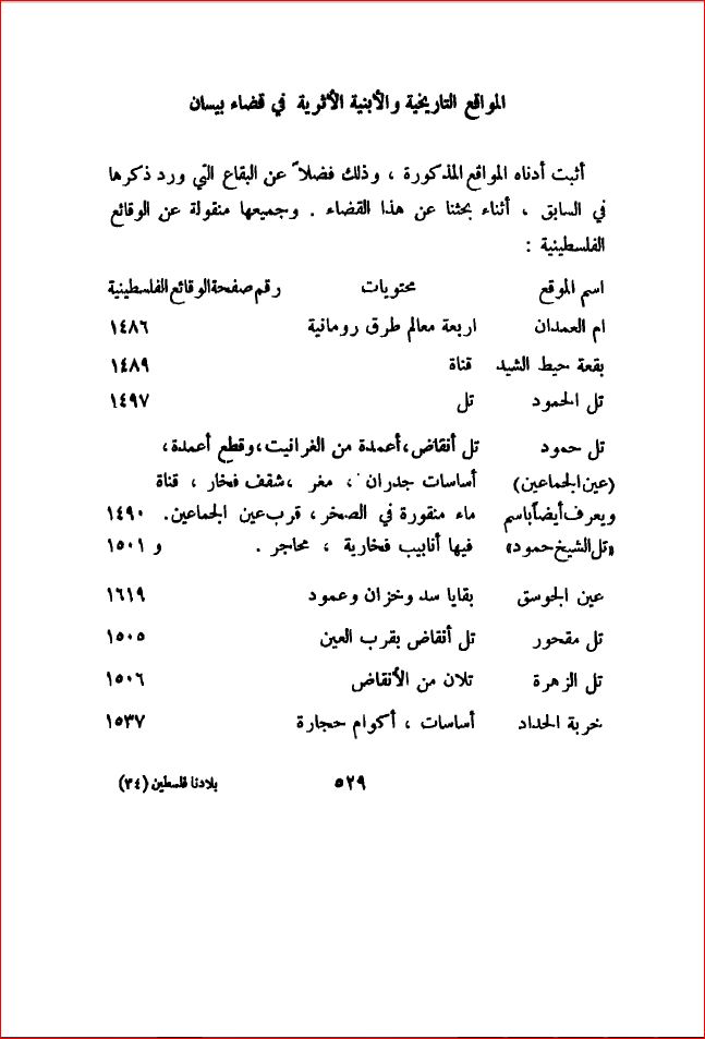المواقع التاريخية والأبنية الأثرية في قضاء بيسان - بلادنا فلسطين، صفحة 529 |