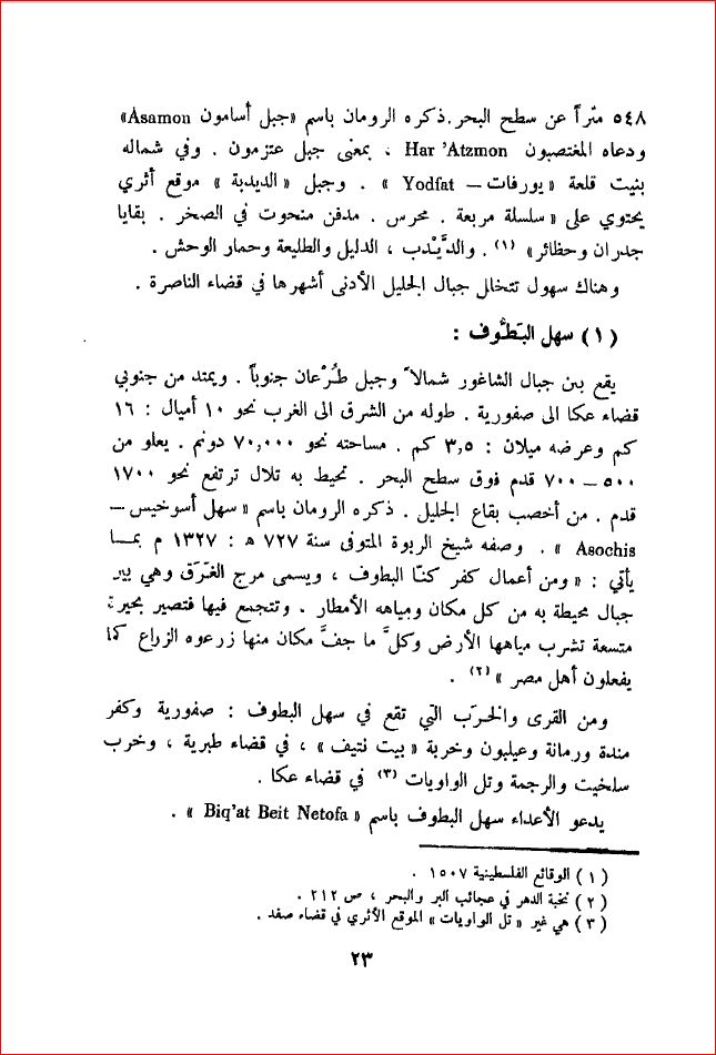سهول قضاء الناصرة: سهل البطوف - بلادنا فلسطين، صفحة 23 |