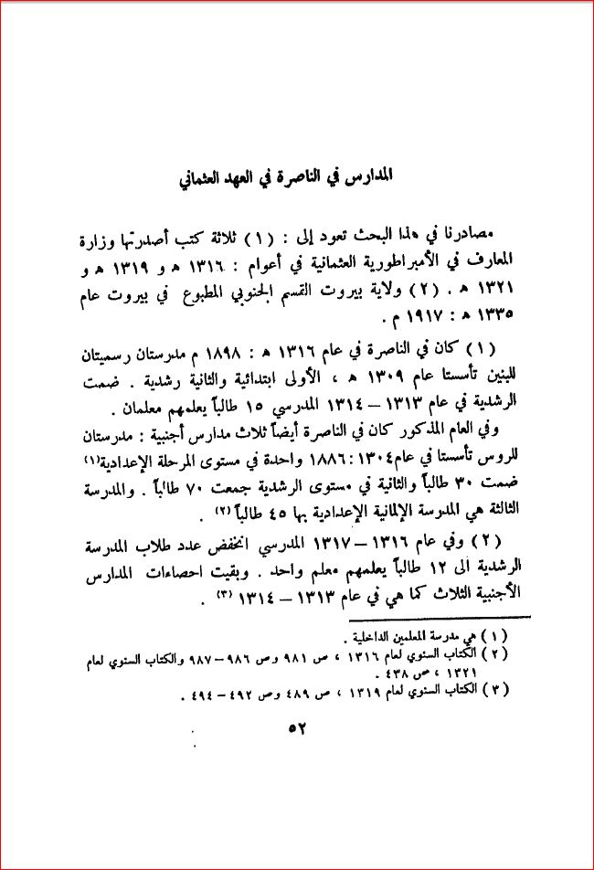 المدارس في الناصرة في العهد العثماني - بلادنا فلسطين، صفحة 52 |