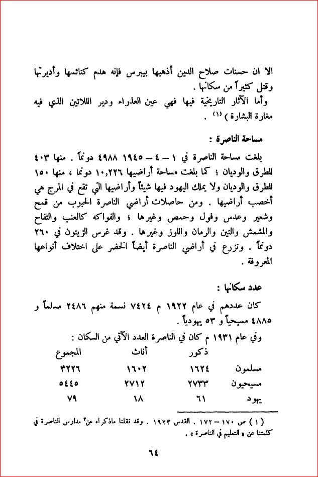 مساحة وعدد سكان الناصرة - بلادنا فلسطين، صفحة 64 |