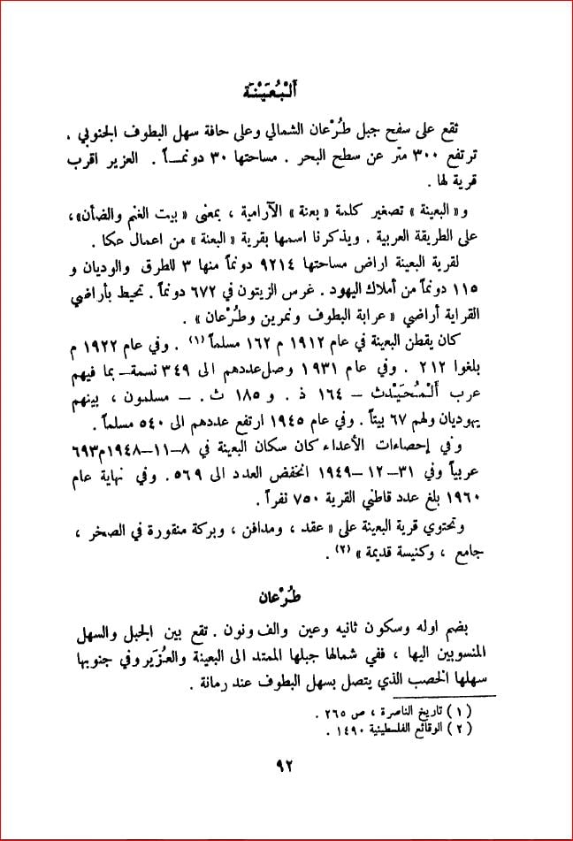 البُعينة، محافظة الناصرة - بلادنا فلسطين، صفحة 92 |