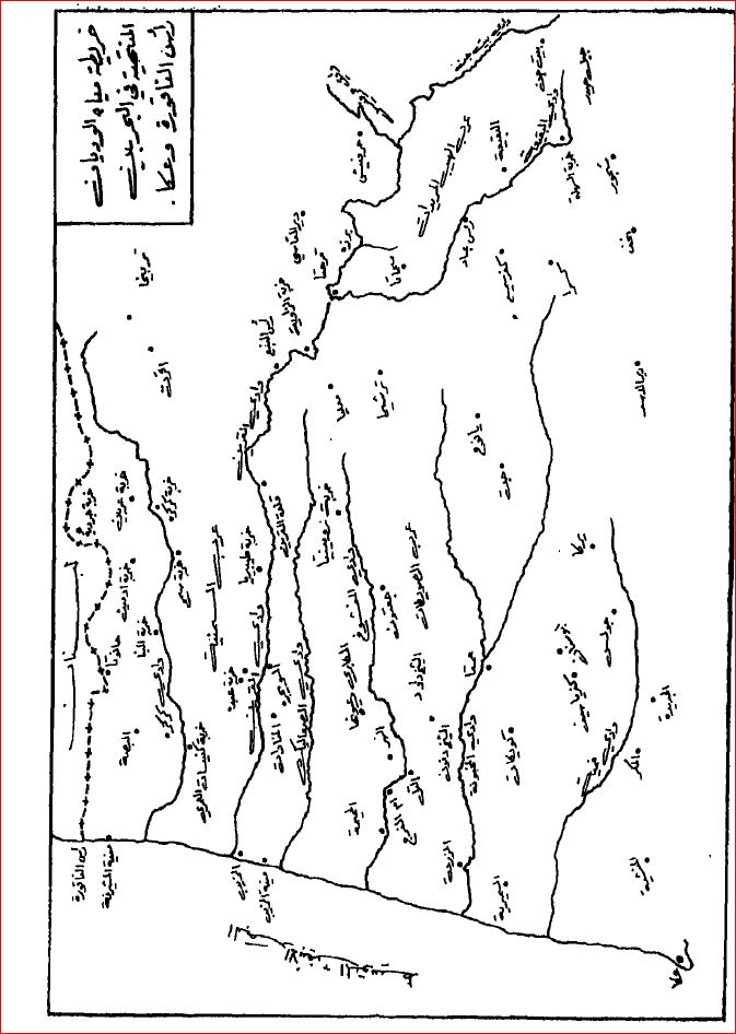 خريطة تبين إنتهاء الأودية في البحر الأبيض المتوسط من الناقورة إلى عكا - بلادنا فلسطين، صفحة 165 |