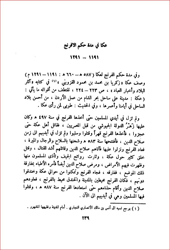 عكا في مدة حكم الفرنجة 1191م الى 1291م - بلادنا فلسطين، صفحة 239 |