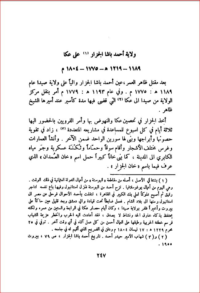 ولاية أحمد باشا الجزار على عكا 1775م - 1804 م - بلادنا فلسطين، صفحة 247 |