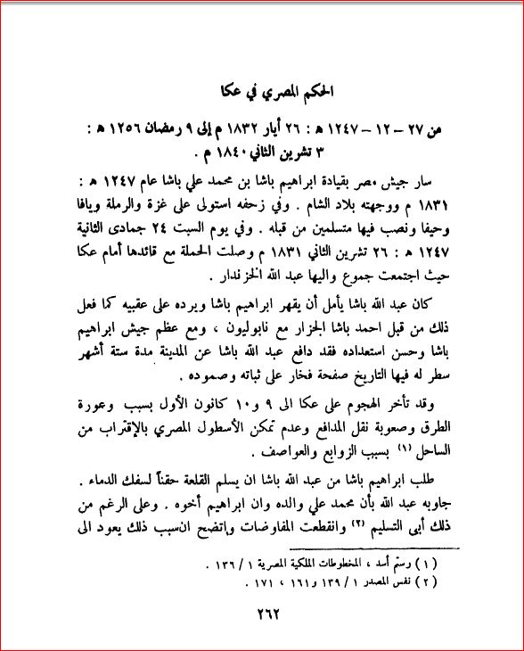 الحكم المصري لعكا من 26 أيار 1832م إلى 3 تشرين ثاني 1840م - بلادنا فلسطين، صفحة 262 |