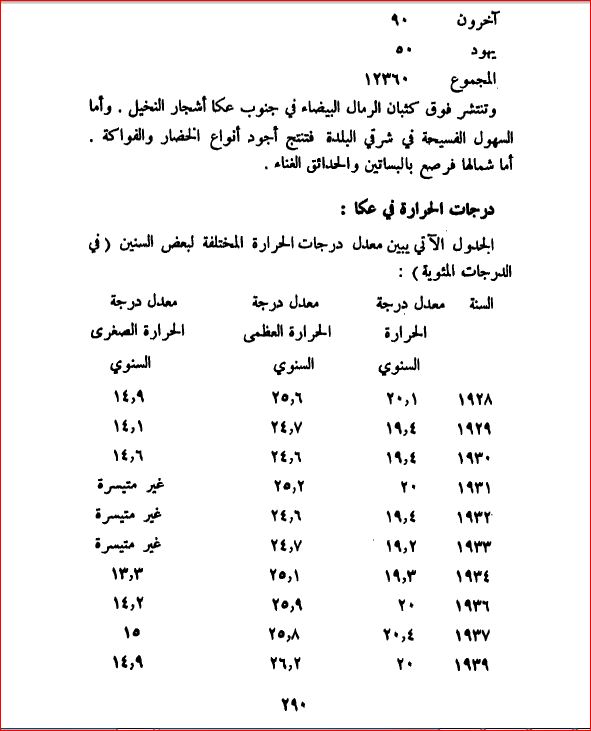 درجات الحرارة في عكا - بلادنا فلسطين، صفحة 290 |