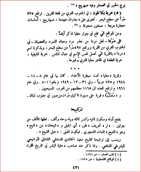 نرشيحا، محافظة عكا - بلادنا فلسطين، صفحة 421 |