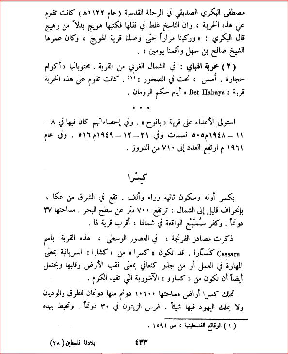 كسرا، محافظة عكا - بلادنا فلسطين، صفحة 433 |