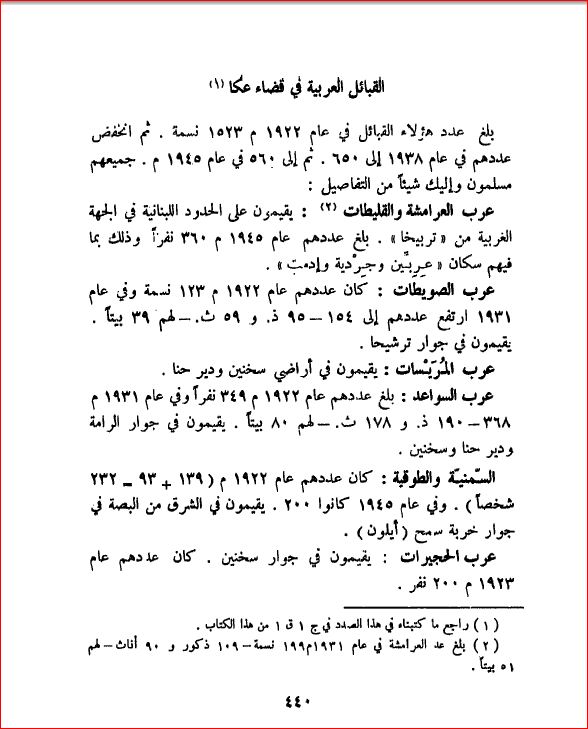 القبائل العربية في قضاء عكا : عرب العرامشة والقليطات وعرب الصويطات وعرب المريسات وعرب السمنية والطويقة وعرب الحجيرات و عرب الصويطات ، بلادنا فلسطين، صفحة 440 |