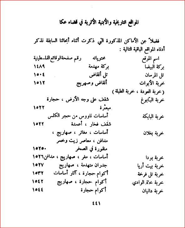 المواقع التاريخية والأبنية الأثرية في قضاء عكا - بلادنا فلسطين، صفحة 441 |