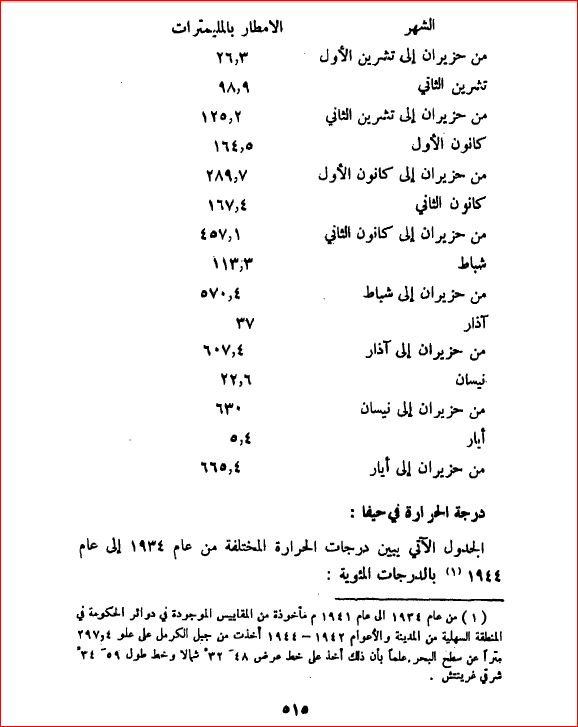 درجة الحرارة في حيفا - بلادنا فلسطين، صفحة 515 |