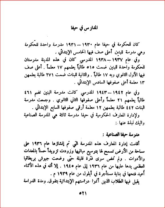 المدارس في حيفا - بلادنا فلسطين، صفحة 521 |