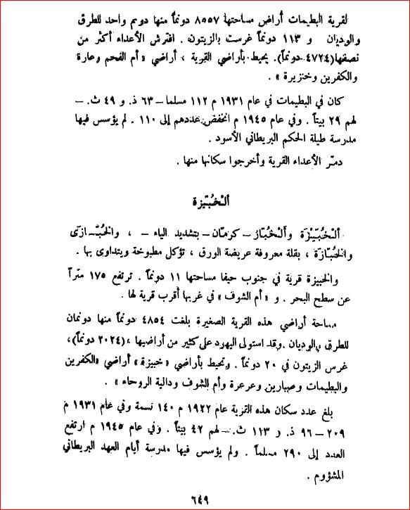 الخبيزة، محافظة حيفا - بلادنا فلسطين، صفحة 649 |
