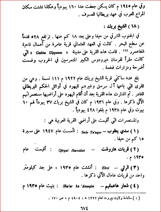 الشيخ بريك، محافظة حيفا - بلادنا فلسطين، صفحة 674 |