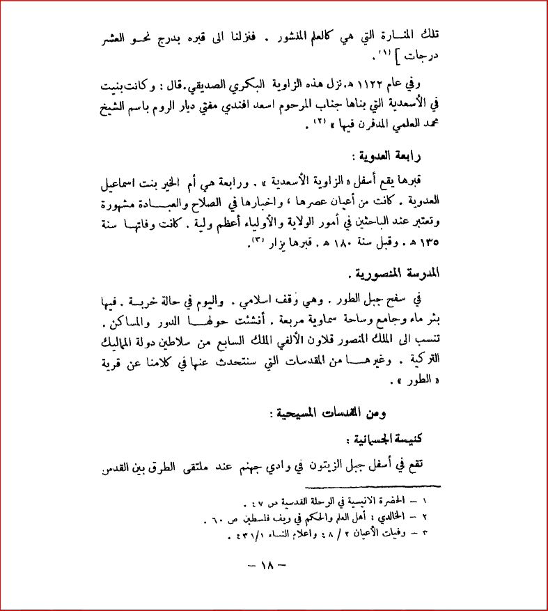 رابعة العدوية والمدرسة المنصورية. المقدسات المسيحية: كنيسة الجسمانية - بلادنا فلسطين، صفحة 18 |