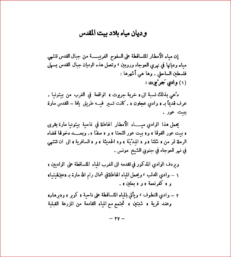 وديان مياه بلاد بيت المقدس: وادي جريوت - بلادنا فلسطين، صفحة 27 |