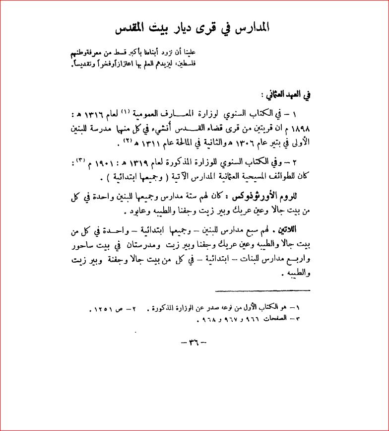 المدارس في قرى ديار بيت المقدس - بلادنا فلسطين، صفحة 36 |