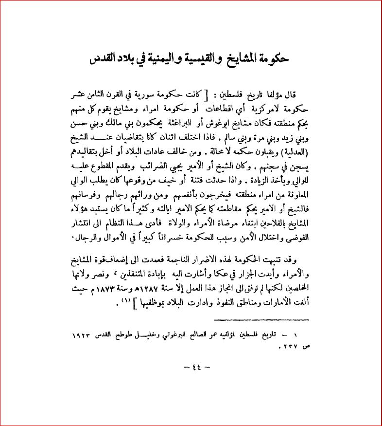 حكومة المشايخ والقيسية واليمنية في بلاد المقدس - بلادنا فلسطين، صفحة 44 |