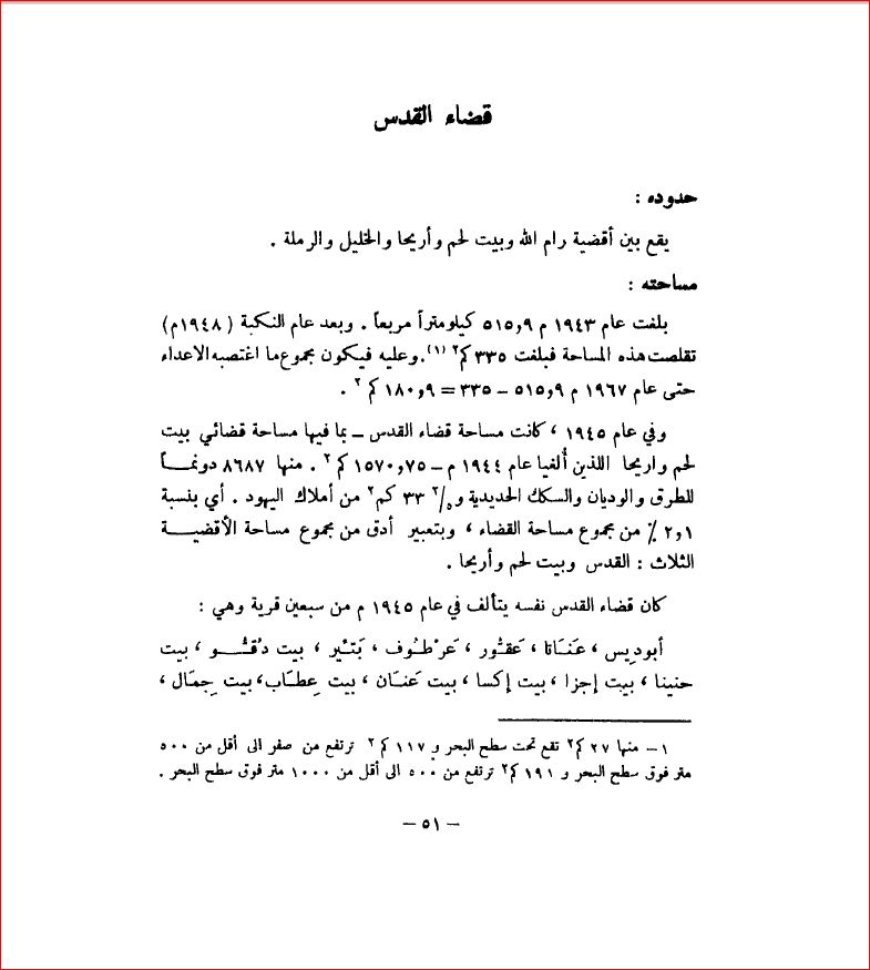 قضاء القدس:حدودة ومساحته - بلادنا فلسطين، صفحة 51 |