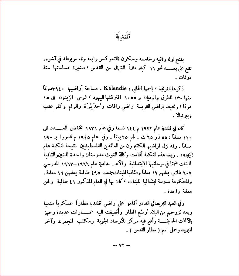 قلندية، محافظة القدس - بلادنا فلسطين، صفحة 72 |