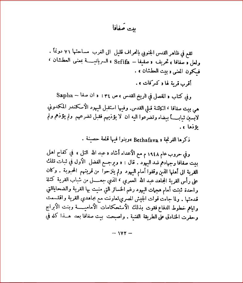 بيت صفافا، محافظة القدس - بلادنا فلسطين، صفحة 172 |