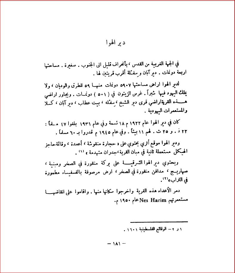 دير الهوا، محافظة القدس - بلادنا فلسطين، صفحة 181 |