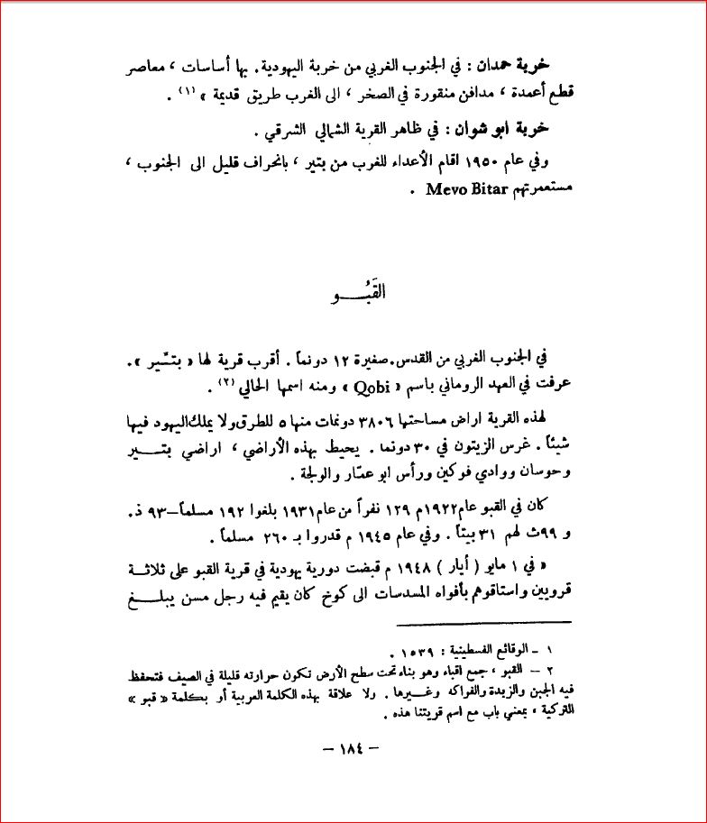 القبو، محافظة القدس - بلادنا فلسطين، صفحة 184 |