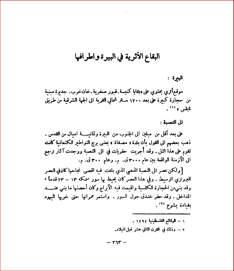 البقاع الأثرية في البيره وجواها - بلادنا فلسطين، صفحة 263 |