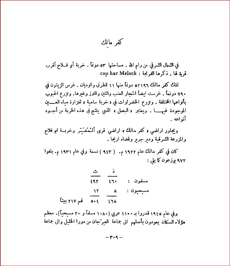 كفر مالك، محافظة رام الله - بلادنا فلسطين، صفحة 309 |