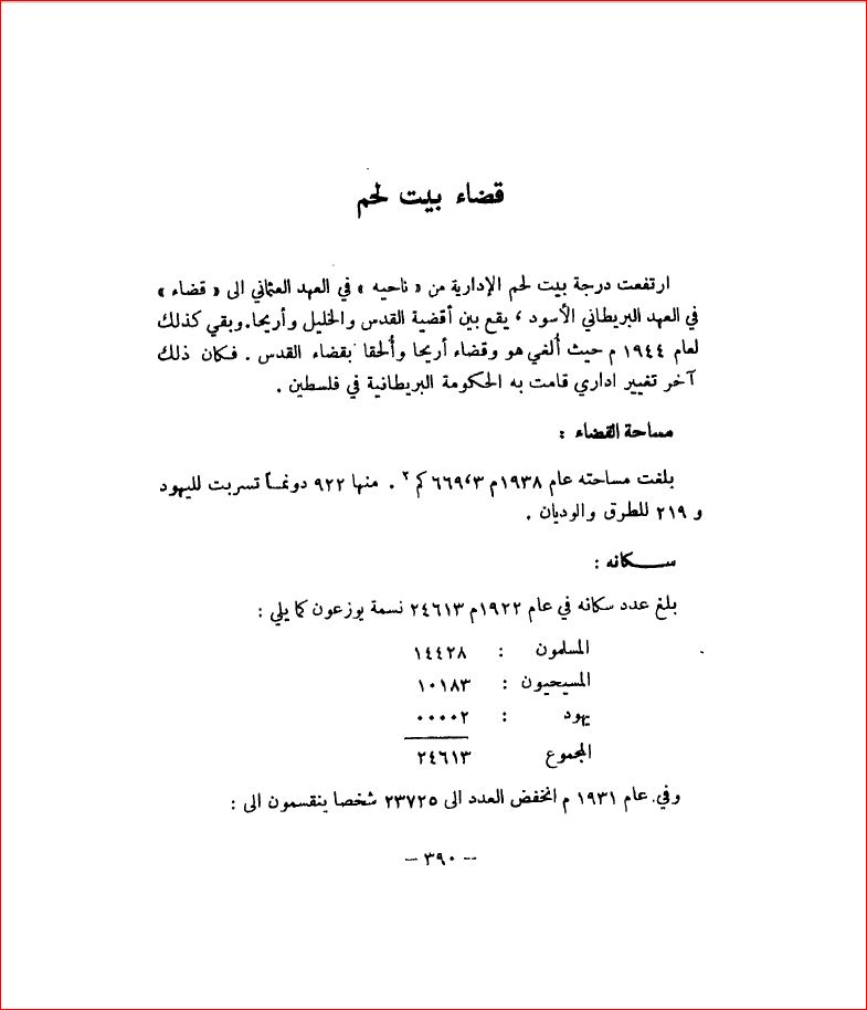 مساحة قضاء وسكان محافظة بيت لحم - بلادنا فلسطين، صفحة 390 |