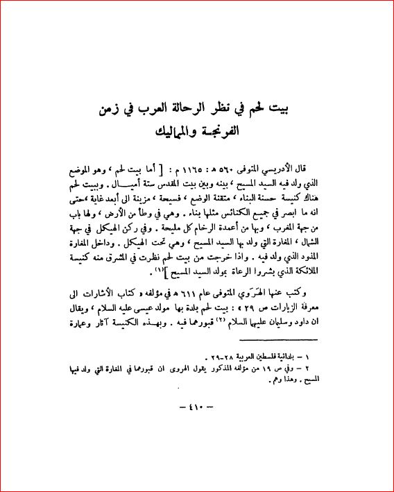بيت لحم في نظرة الرحالة العرب في زمن حروب الفرنجة والمماليك - بلادنا فلسطين، صفحة 410 |