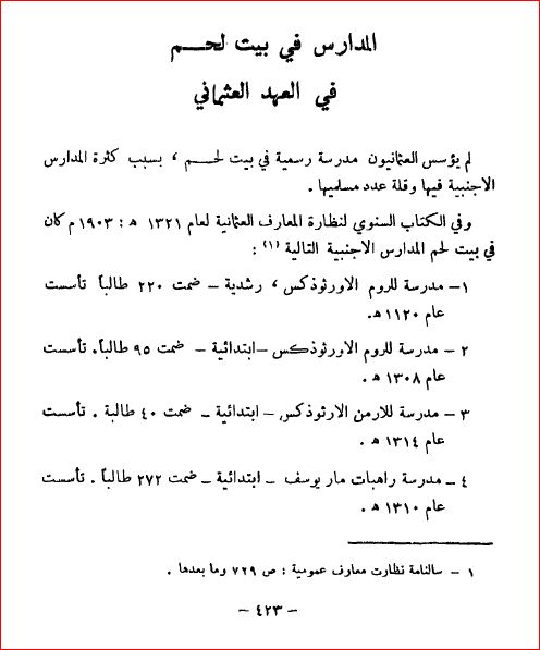 المدارس في بيت لحد في العهد العثماني - بلادنا فلسطين، صفحة 423 |