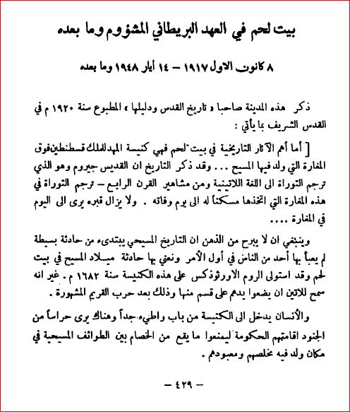 بيت لحم في العهد البريطاني المشؤوم وما بعده - بلادنا فلسطين، صفحة 429 |