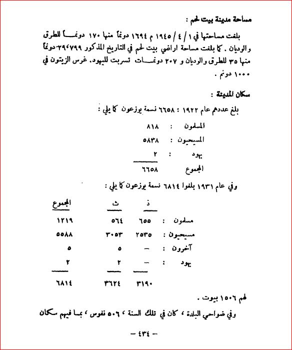 مساحة مدينة بيت لحم وسكانها - بلادنا فلسطين، صفحة 434 |