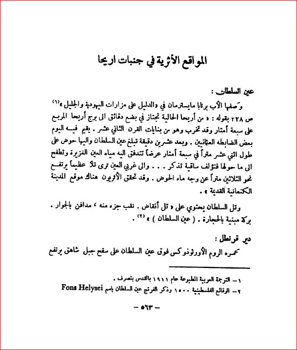 المواقع الأثرية في جنبات أريحا: عين السلطان ودير القرنفل - بلادنا فلسطين، صفحة 563 |