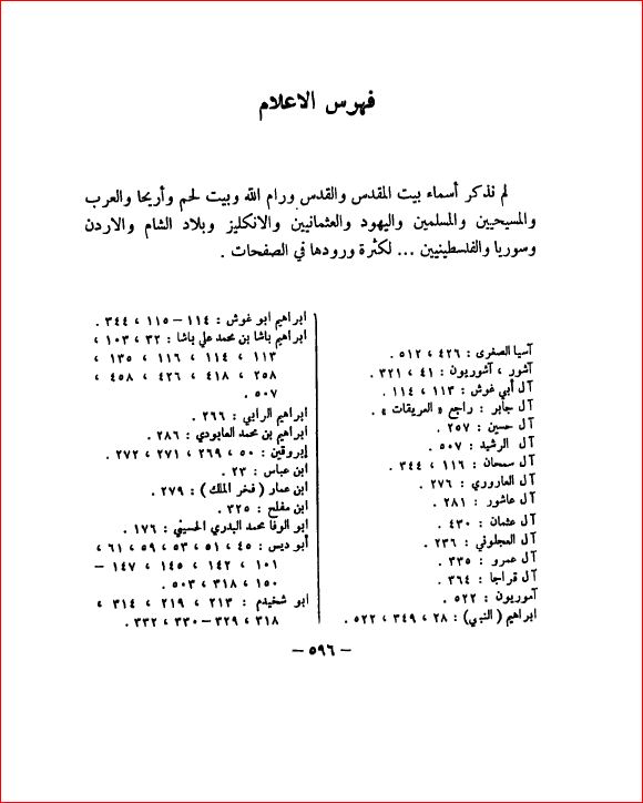 فهرسة الأعلام في محافظات بيت المقدس ورام الله وبيت لحم وأريحا - بلادنا فلسطين، صفحة 596 |