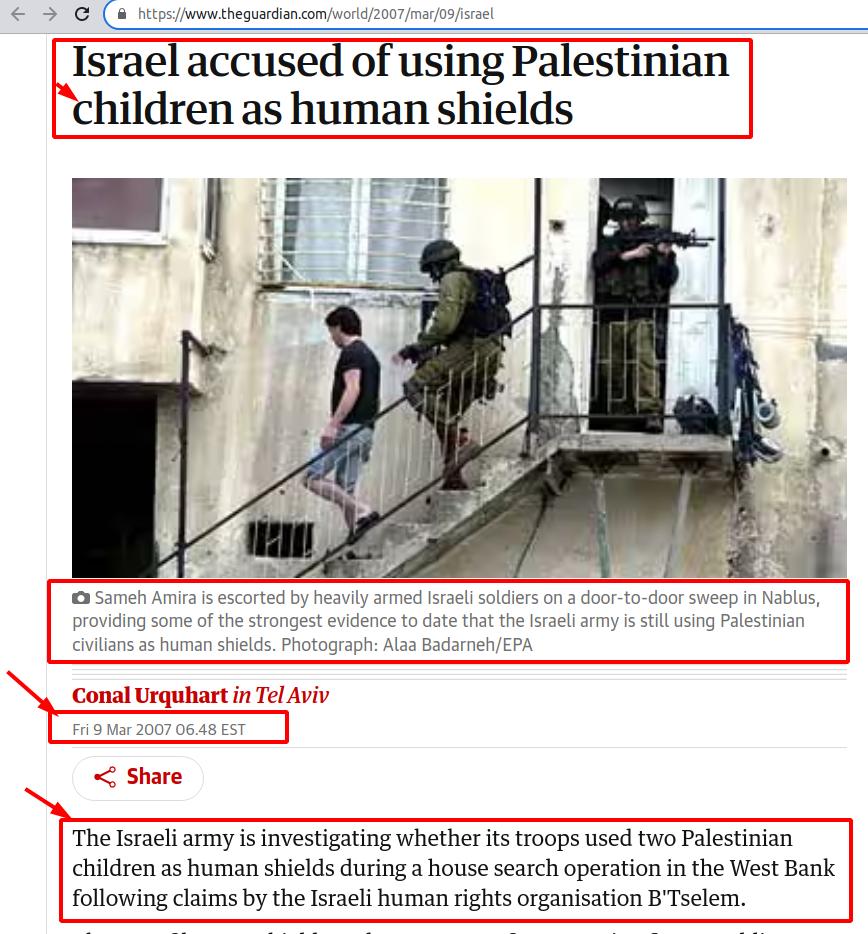 - Video Clip: BBC: Palestinian boys used as a human shield during an Israeli operation in Nablus