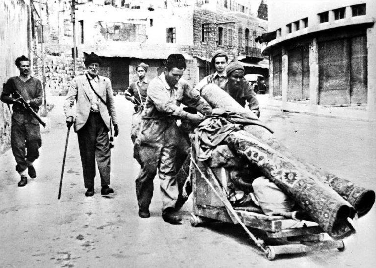 Members of the Haganah escorting Palestinians expelled from their homes out of Haifa, May 12th, 1948. Photo: AFP
