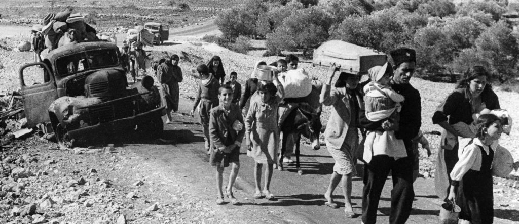 Arab refugees flee fighting between Israel and Arab troops in the Galilee, November 4th, 1948. Photo: Jim Pringle/AP Photo
