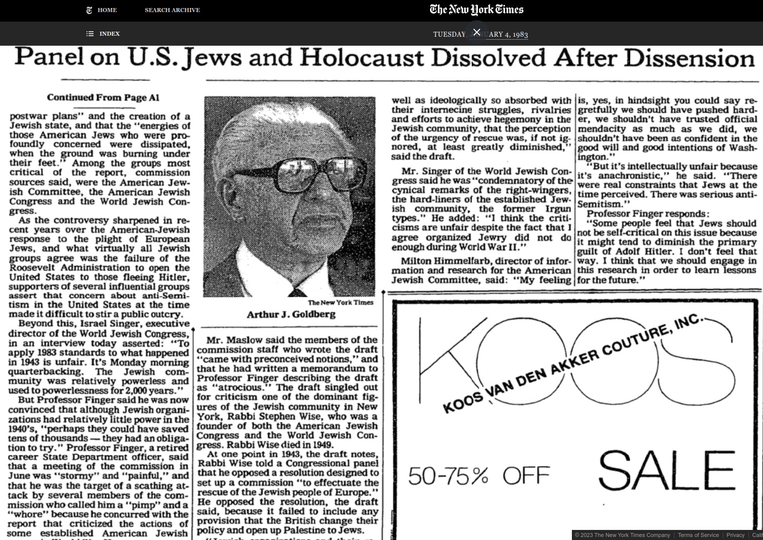 https://www.nytimes.com/1983/01/04/us/panel-on-us-jews-and-holocaust-is-dissolved.html