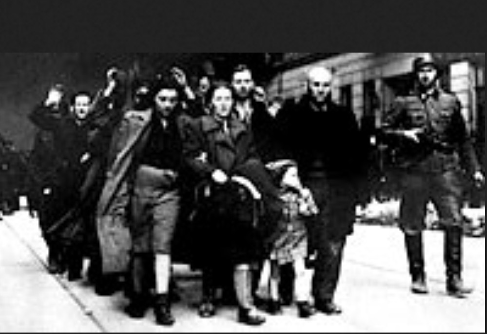 Jewish civilians are marched down the street during the destruction of the Warsaw Ghetto. The Bermuda Conference began on the same day the Germans made their final assault on the ghetto