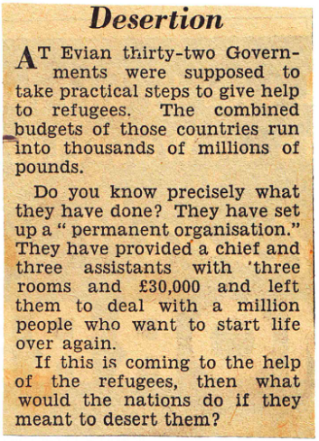 Representing Britain, Lord Winterton (Edward Tournour) noted, “It has been represented in some quarters that the whole question, at least of the Jewish refugees, could be solved if only the gates of Palestine were thrown open to Jewish immigrants without restriction of any kind.” That was an obvious reference to the Zionist view. But Lord Winterton explained that “Palestine is not a large country,” and “there are special considerations arising out of the terms of the mandate.” That was a reference to the need to protect the existing population of Palestine. Lord Winterton told the delegates that “the question of Palestine stands upon a footing of its own and cannot usefully be taken into account at the present stage in connection with the general problems that are under consideration at this meeting.”3