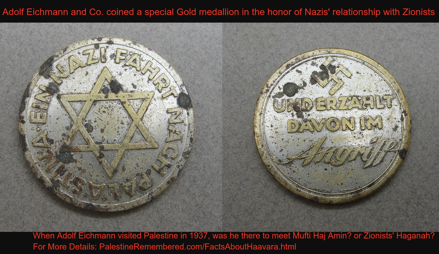 At this link, you shall find Eichmann's own report (which he filed at the Gestapo's HQ in Berlin) detailing his visit to Palestine in 1937, and his meetings with his Haganah handlers (Feivel Polkes & Co.). Eichmann's report was collected and translated by the Holocaust Library as part of documenting the calamity during WWII. When this visit came to light after WWII ended, Zionists were quick to pin it on their favorite patsy the Mufti Haj Amin al-Husseini. Here are the boring details.