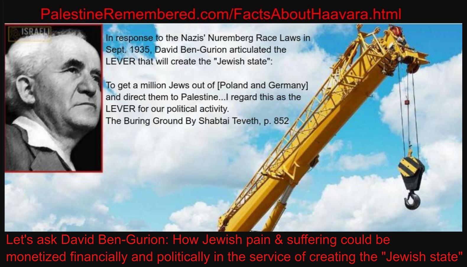 David Ben-Gurion envisioned that Nazis' Nuremberg Race Laws would become the LEVER that would end up creating the "Jewish state," but how? Click the image for the details In the context of exploiting Jewish pain and suffering, Prof. Aviva Halamish used the word LEVER to describe the process with which Jewish refugee crises were exploited to turn Palestine into a Jewish majority state, thus clearing the path for the creation of the "Jewish state." On the other hand, we NEVER imagined she was citing Ben-Gurion's terminology until we examined the primary sources (see pages 852, 854, and 848)!