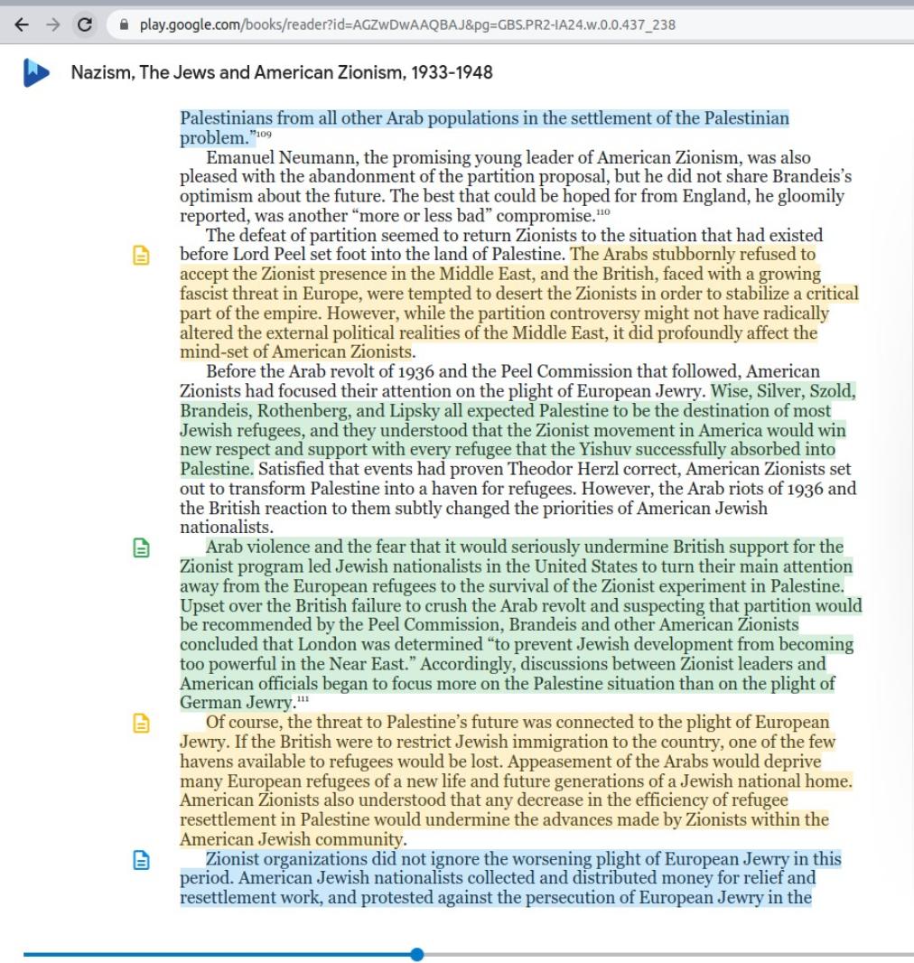Nazism, The Jews, and American Zionism, 1933-1948 By Aaron Berman, p. 26-27, 63-65, 86-87, and the whole chapter III. After you read chapters III, IV, & V, and you might lose your religion. To Zionists, refugee crisis (to Arabs or Jews) always implied a LEVER; what a hateful word to use in this context!